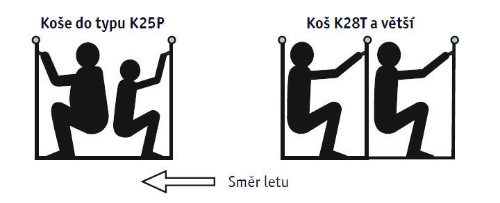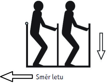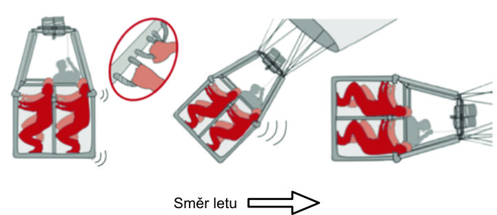 Rychlé přistání – stůjte v koši nízko, v podřepu, s ohnutými koleny. Hlavy musí být schované pod horním okrajem koše. Držte se oběma rukama madel, odložte všechny předměty. V otevřených koších budou těžší osoby jako první ve směru letu.